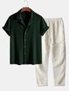 Short Sleeve Knitted Waffle Cuban Shirt & Straight Linen Pants