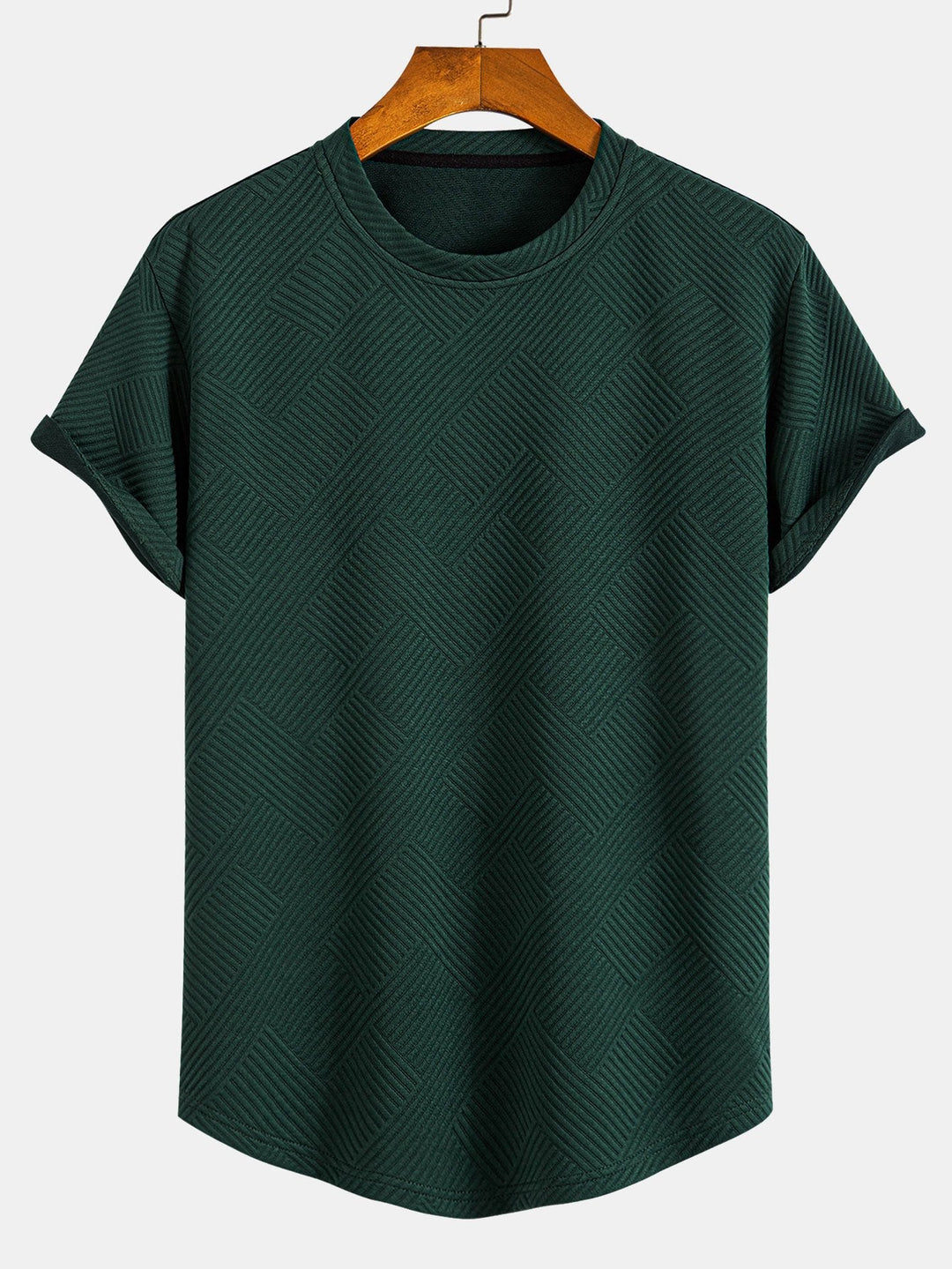 Short Sleeve Striped Jacquard Bow Hem T-Shirt
