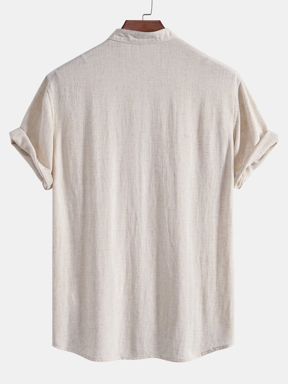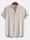 Short Sleeve V-Neck Linen Rayon Mix Shirt