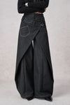 Swinging Symphony Fake Two-Piece Wide-Leg Jeans
