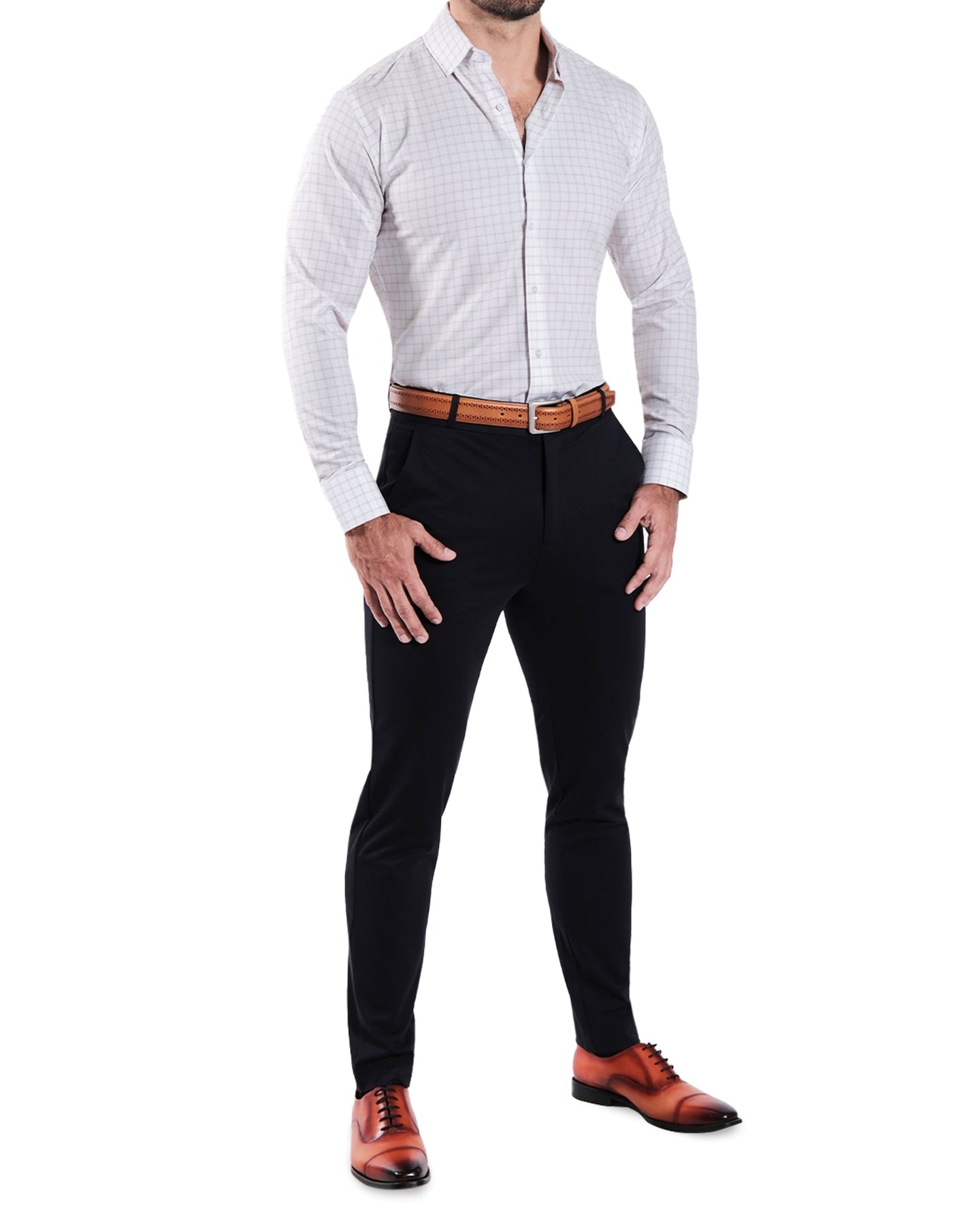 Our Signature Athletic-Fit Dress Shirts are crafted from our Pro Performance Fabric that is lightweight, moisture-wicking, and extremely stretchy. The smooth, woven finish combined with the structured cuffs and collars provides a sharp, professional look, and the stretch in the fabric allows for a close-fitting, modern, tailored look without sacrificing comfort.